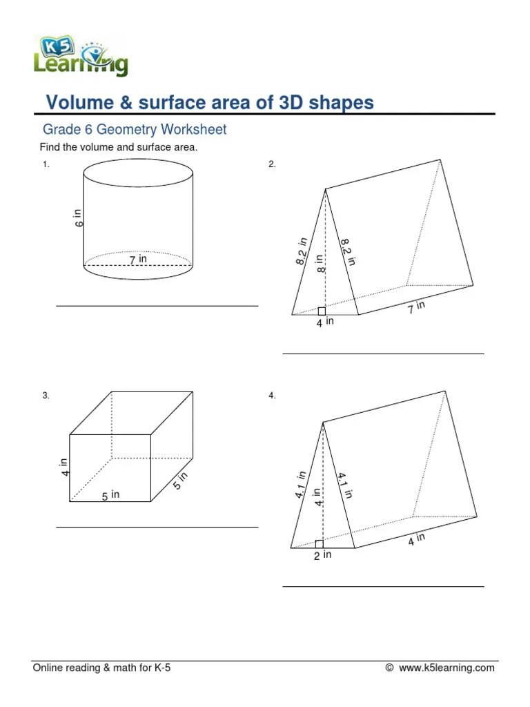 Grade 6 Geometry Worksheets: Volume And Surface Area Of 3d Shapes