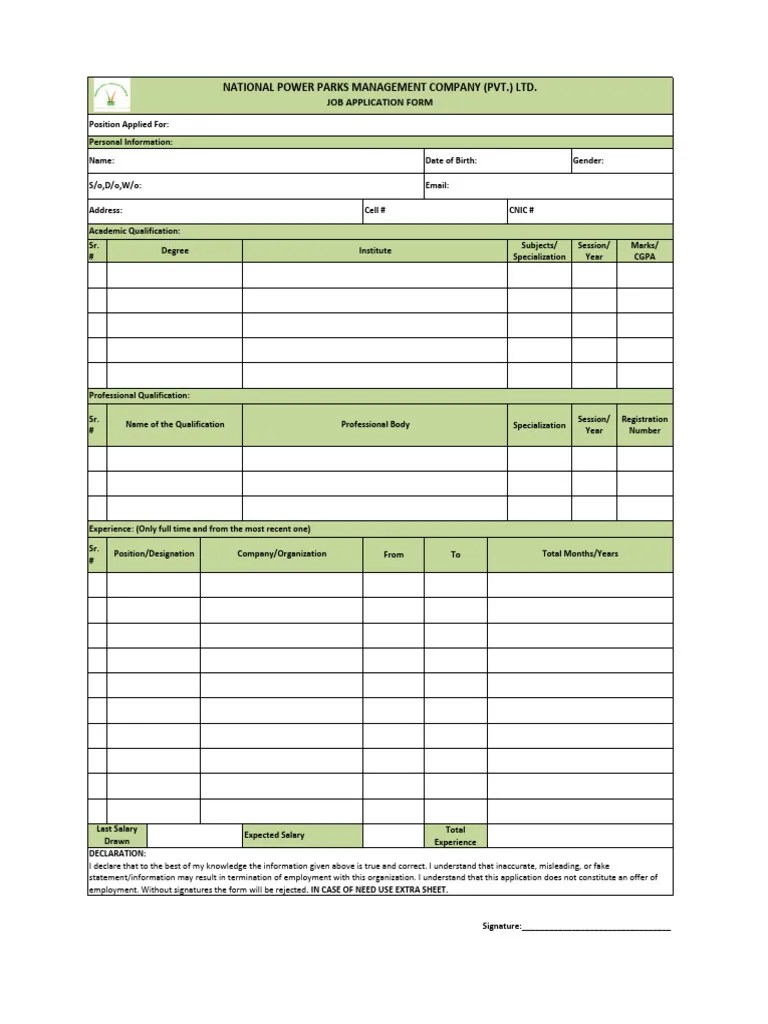 Job Application Form Format Pdf